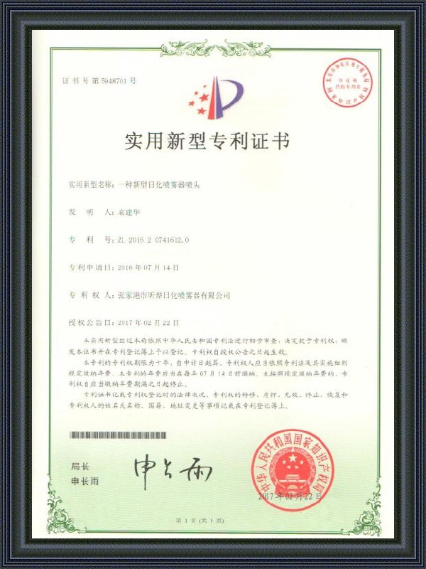 Sprinklerhovederne produceret af virksomheden er meget kendte verden over. De er også blevet solgt ikke kun i Kina, men i udlandet. I mellemtiden har virksomheden bestået ISO9001-2008 kvalitetssystemet certificering. Virksomheden har sit hovedkvarter i Le Yu Economic Development Zone i den smukke by Zhang Jiagang, som også er kendt som Oriental Pearl.